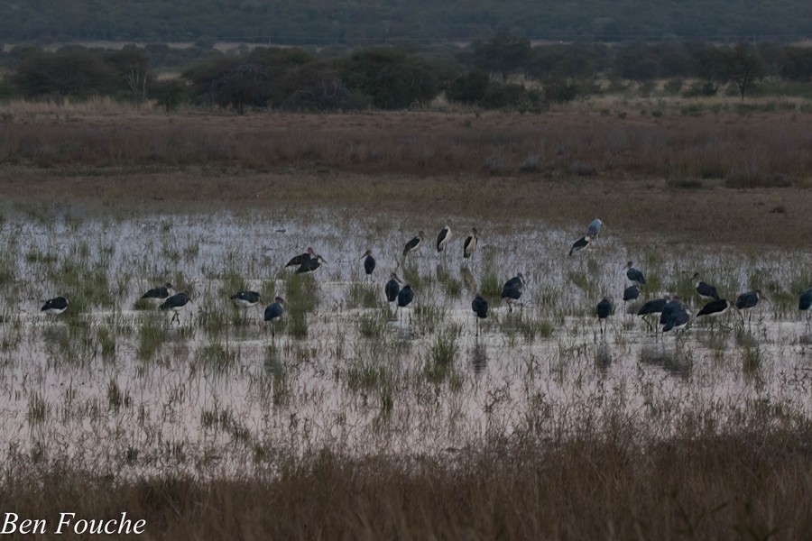 Roadside birding at the large dam on the Kloppersbos/Pyramid road produced a Gauteng rarity of not less than 33 Marabou Storks. (Also mentioned in Trevor Hardaker’s rarity report)