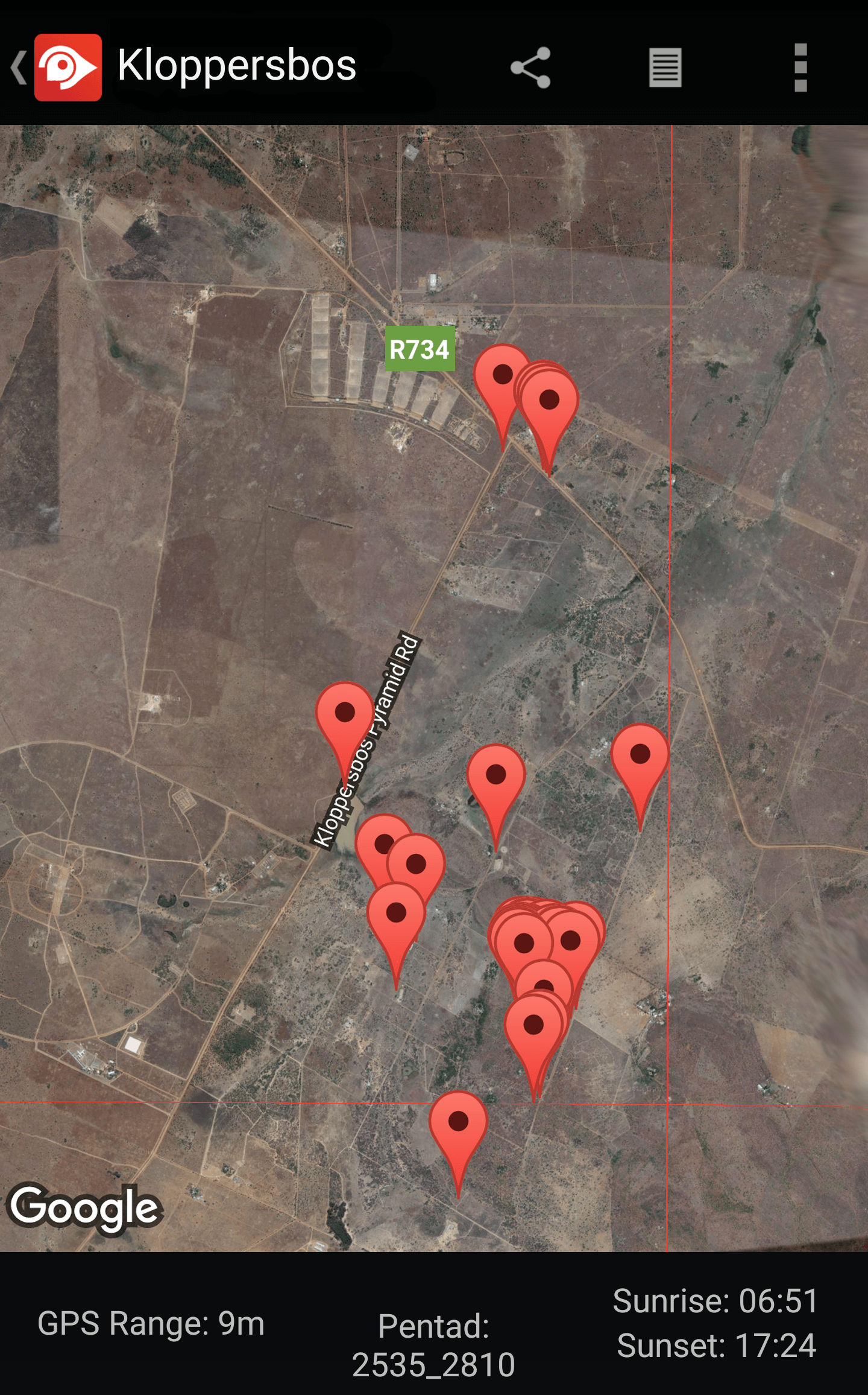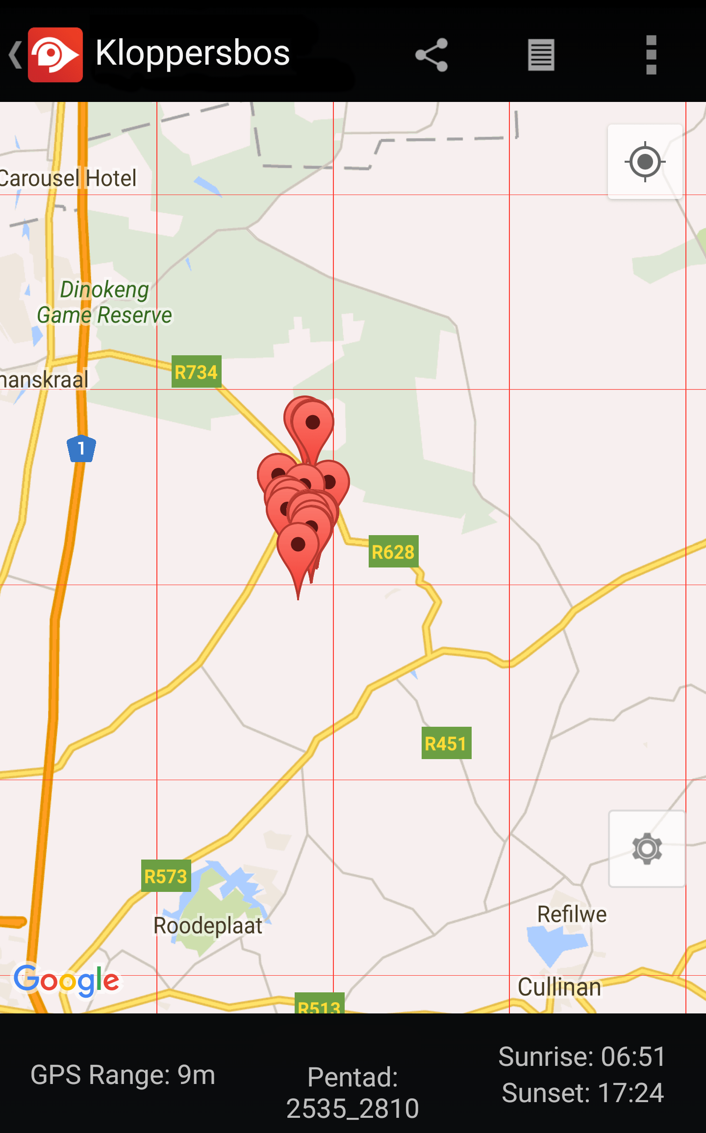 Kloppersbos is situated approximately 40km north-east of Pretoria. Ben Fouche, Rihann Geyser, Tiaan Muller and Theuns Botha visited Klopperbos on Saturday 11 June 2016 to gather data for the Southern African Bird Atlas Project 2 (SABAP2) sabap2.adu.org.za. The trip covered the pentad 2525_2800 and included nocturnal observation.